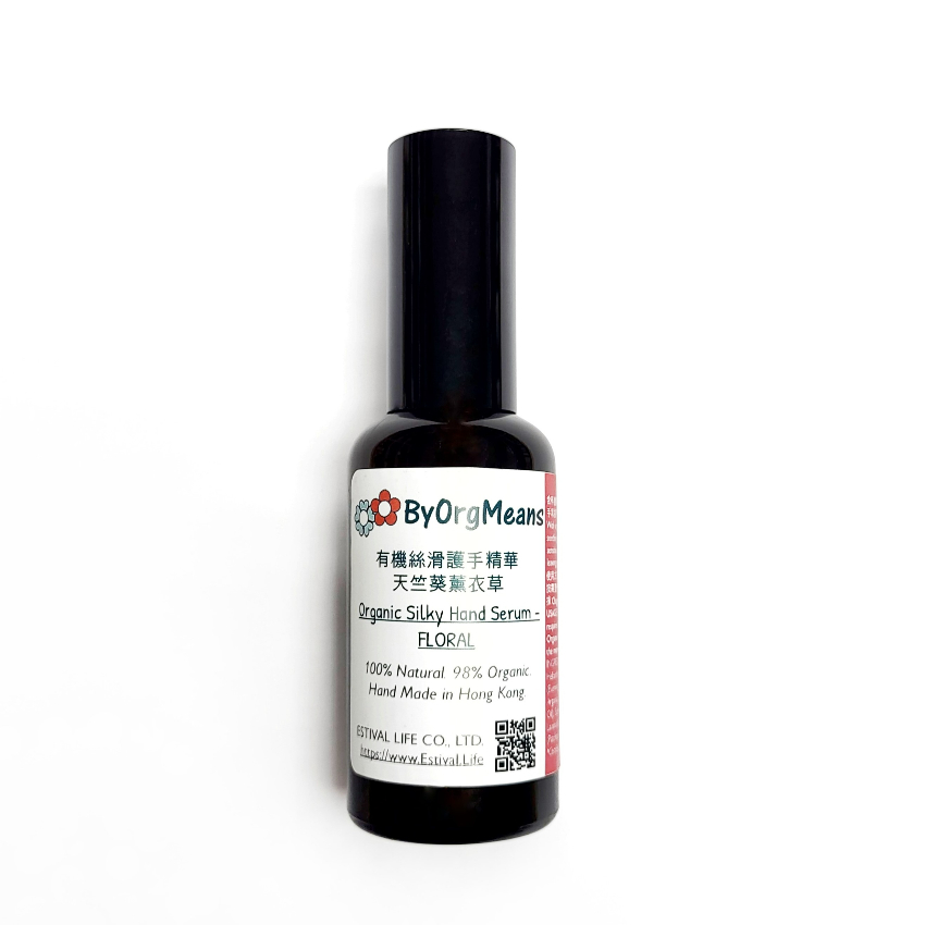 含有有機甜杏仁油、有機葵花籽油、有機月見草油、有機初榨牛油果油、有機初榨摩洛哥堅果油、有機精油(天竺葵、熏衣草、廣藿香)和天然維他命E油。ByOrgMeans有機絲滑護手精華專為最敏感、乾燥和爆拆的皮膚和指甲,提供舒緩、保濕和滋養護理,可以被皮膚快速輕鬆地吸收,潤而不膩!